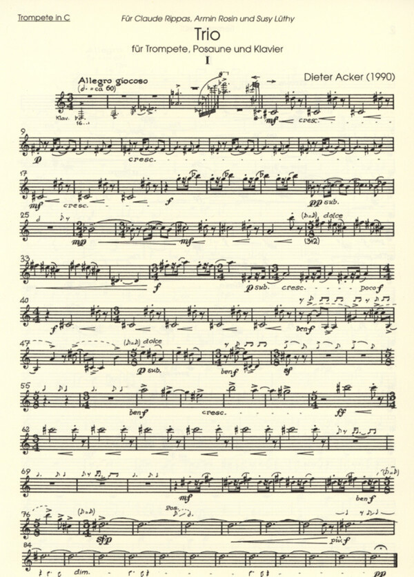 für Trompete (in C), Posaune + Klavier