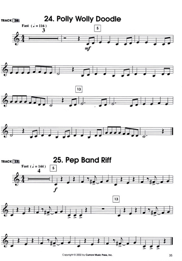 (32 Tite l: Mary Had a Little Lamb - Lightly Row - London Bridge - Twinkle Twinkle Li ttle Star - Frere Jacques - Yankee Doodle - This Old Man - Aura Lee - Old MacDonald - When The Saints - Ode To Joy - Can Can - Mexican Hat Dance - Kum-Bah-Yah - Michael Row The Boat Ashore - Oh Susannah - Polly Wolly Doodle - Aloutte - Amazing Grace - Grandfather's Clock, im Baß- oder Violinschlüssel)