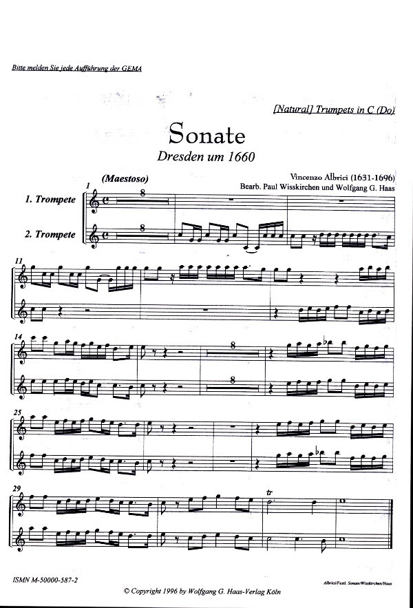 (Dresden um 1660, 1631-1696, festlich, Tr in B oder Naturtr in C, bis d''') für 2 Trompeten + Orgel