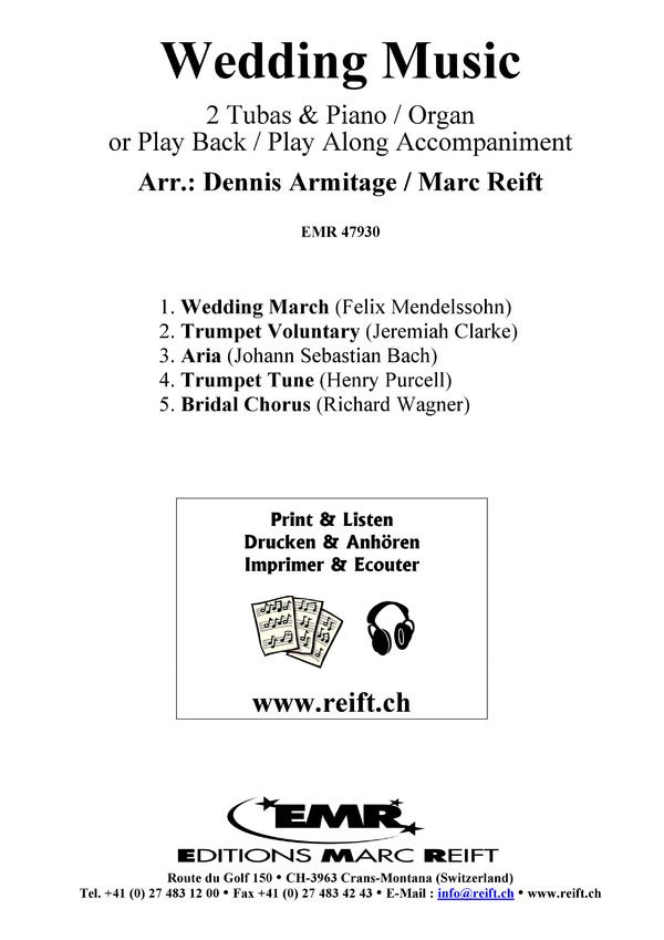 Wedding March (Mendelssohn) / Trumpet Voluntary (Clarke) / Aria (Bach) / Trumpet Tune (Purcell) / Bridal Chorus (Wagner)