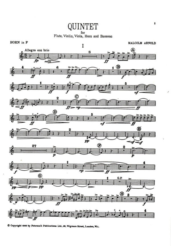 für Flöte, Violine, Viola, Horn + Fagott