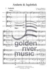 Andante & Jagdstück are based on several sketches by Ludwig van Beethoven, which are housed in the British Library in London. The first movement is an elaborate quartet fragment in E-flat major. Likely intended as the beginning of the second movement of a string quartet, it is, with just a few small adaptations, very playable with four horns. Several uninstrumented sketches in 6/8 time are found in the so-called Kafka-Sketchbook. Since the main theme strongly resembles a traditional 18th-century hunting fanfare, the fragments are elaborated into a genuine Jagdstück (Hunting piece). Both fragmentary compositions were written by Beethoven around 1795/6 and blend remarkably well together. The result is undoubtedly a patchwork, but almost 90% of these two short compositions is based on (completely unknown) original music by one of the greatest composers in music history.