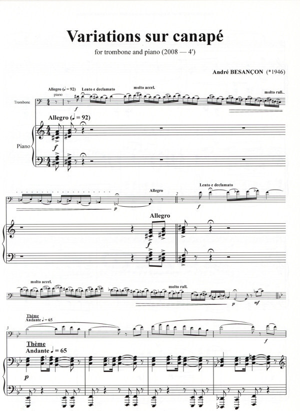 dieses Stück ist eine Parodie eines in der Bell Epoque sehr geschätzten populären Musik-Genres, insbesondere von Jean Babptiste Arban und seinen Nacheiferern. Sie bezauberten das Publikum in den Musikpavillons, den vornehmen Teehäusern oder an sommerlichen Frühstücks im Grünen mit atemberaubenden Themen und Variationen. Für versierte Instrumentalisten ist diese teuflische Virtuosität oft nur Schein. Die Rolle im Spiel "kleine Ursachen, grosse Wirkung" ist hier der Posaune anvertraut. Wetten, dass die Scheinschwierigkeit deises humorvollen Stückleins rasch durchkreuzt wird, die Posaune beginnt mit einer Kadenz