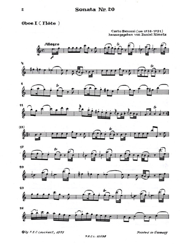 für 2 Oboen, 2 Hörner (in C) + Fagott oder bearbeitet für Flöte, Oboe, Klarinette, Horn (in C) + Fagott