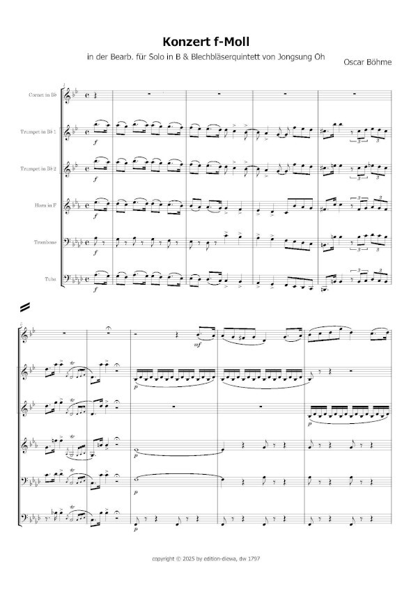für Solo-Kornett in B, 2 Trompeten in B, Horn in F und Tuba sehr gelungene Bearbeitung