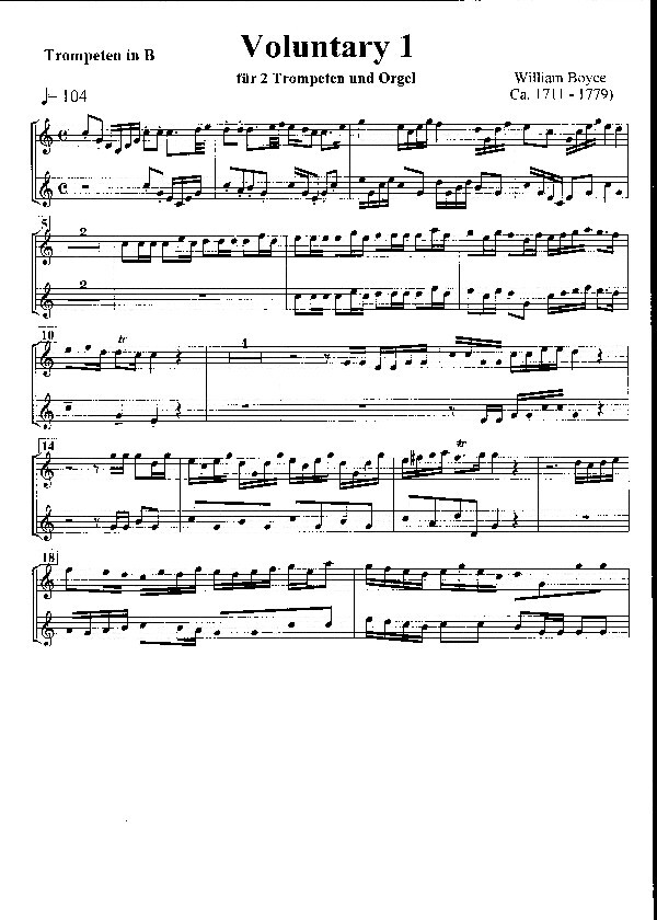 (ca. 1711-1779, Introduktio n (Trompeten tacent) ad lib. - Voluntary 1, transponiert nach B-Dur, Trompet en in B)