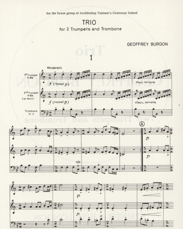 (1970, gut geeignet für Wettbewerbe wie "Jugend musiziert", Vorspiele und Konzerte, 3 Sätze) für 2 Trompeten + Posaune 2 Spielpartituren