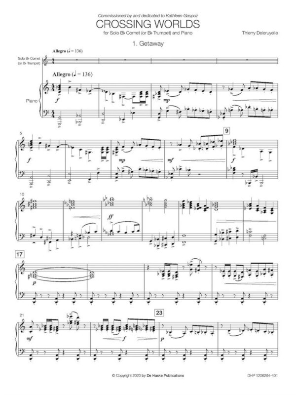 Crossing Worlds ist ein Kornett (oder Trompete) Konzert, das von der Schweizer Kornettistin Kathleen Gaspoz in Auftrag gegeben wurde. Sie schrieb Geschichte, als sie in der 200-jährigen Geschichte als erste Frau die Position des Principal Kornett sowohl in der berühmten Brighouse & Rastrick Band als auch in der Grimethorpe Colliery Band erhielt. Crossing Worlds besteht aus drei Sätzen (Getaway, Skylights und Welcome Parade) und beschreibt den Lebensweg eines Musikers. Auf seinen Reisen entdeckt der Künstler verschiedene Länder, Kulturen und Landschaften.