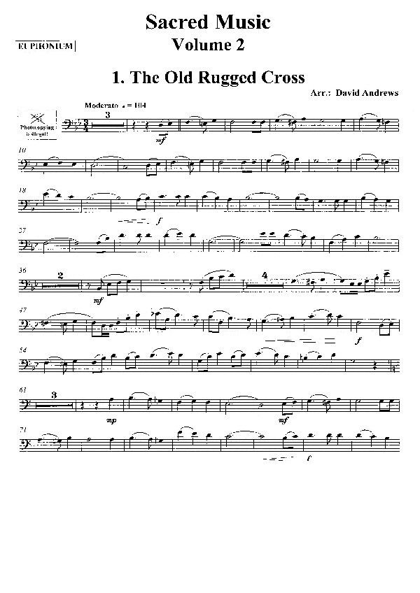 (Inhalt: Oliver: Onward, Christian Soldiers - Andrews: The Old Rugged Cross - Tailor: Requiem - King: The Lord's My Shepard - Macduff: Jerusalem) für Euphonium und Klavier (Orgel)