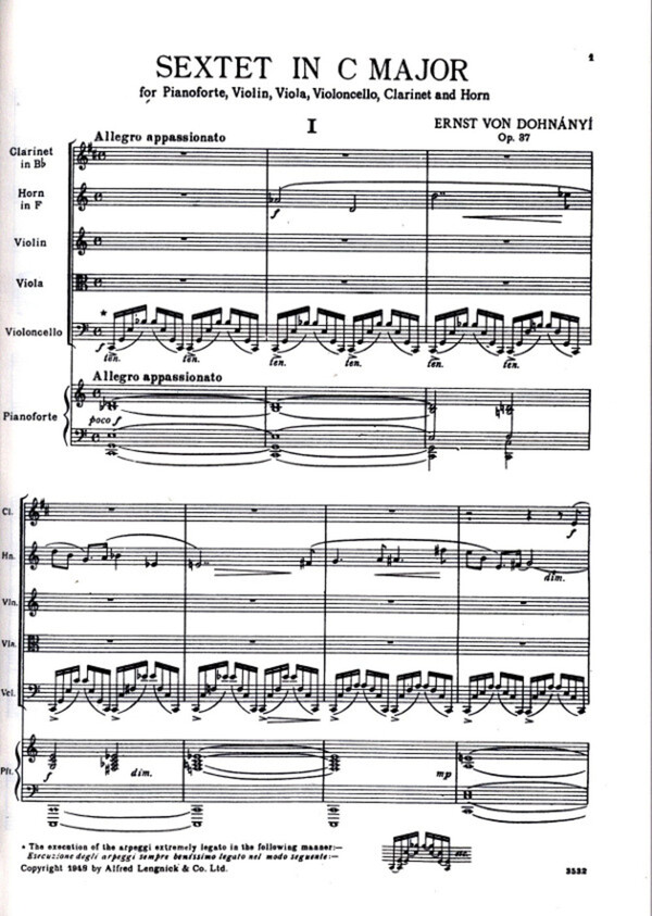 für Klarinette, Horn, Violine , Viola, Violoncello + Klavier