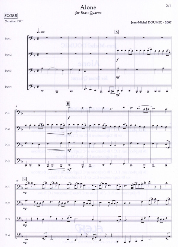 Part 1: Euphonium in B - TC, Euphonium in C - BC, Trombone Part 2: Euphonium in B - TC, Euphonium in C - BC, Trombone Part 3: Euphonium in B - TC, Euphonium in C - BC, Trombone, Tuba in C Part 4: Euphonium in C - BC, Bass Trombone, Tuba in C