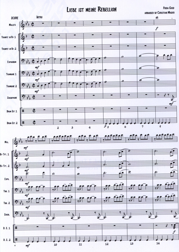 für 2 Trompeten in B/C, 2 Posaunen in C/B, Euphonium in C/B/Horn in F/Es, Tuba in C/B, Percussions, Drums