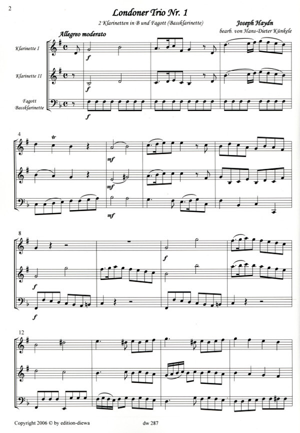 für 2 Klarinetten in B und Bassklarinette (Fagott)