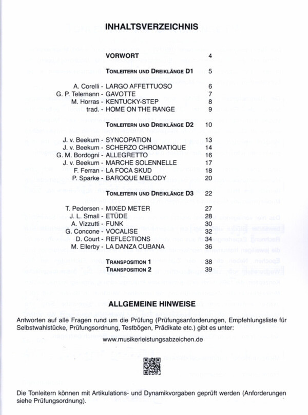 für die Instrumentalprüfungen des bayerischen Blasmusikverbandes D1, D2 und D3