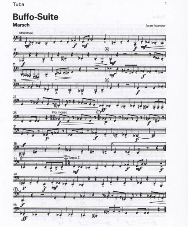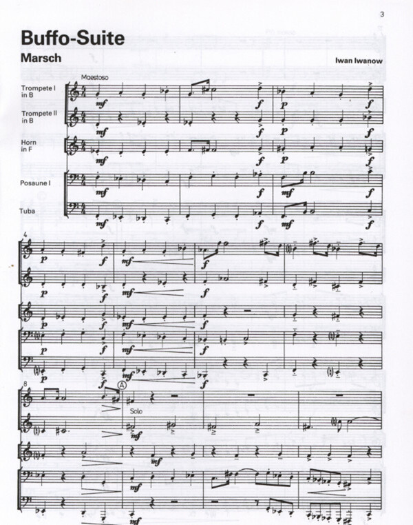für 2 Trompeten, Horn (Posaune), Posaune + Tuba