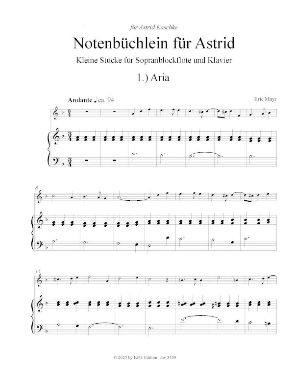 Notenbüchlein für Astrid - Kleine Stücke