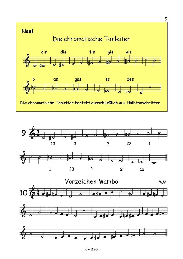 Ab Seite 100 findest du Einspielübungen, die du jeden Tag zum Einspielen und Aufwärmen machen solltest. Dort sind dann auch zu allen Tonleitern, die du im Buch lernst, zusätzliche Übungen, die ich dir empfehle regelmäßig zu spielen. Das Ziel sollte darin bestehen, alle Tonleitern auswendig zu spielen.
