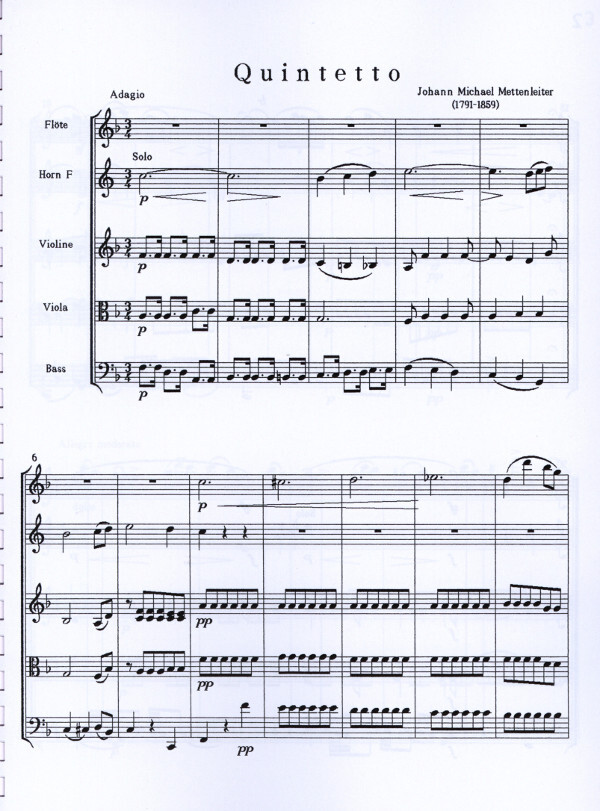 für Flöte, Horn in F, Violine, Viola + Bass