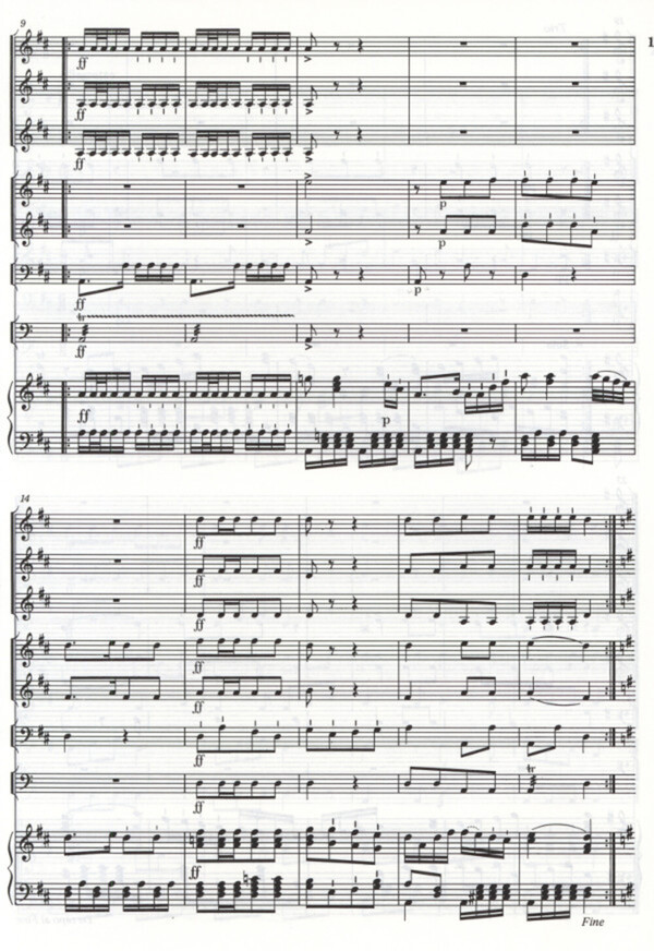 für 4 (3) Trompeten, 2 Hörner, Posaune, Pauken + Orgel