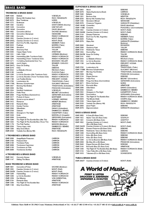 Musik arrangiert von: Bertrand MorenVerlag: Editions Marc Reift Ausgabe: NotenArt-Nr.: EMR 3725 / EMR 3725