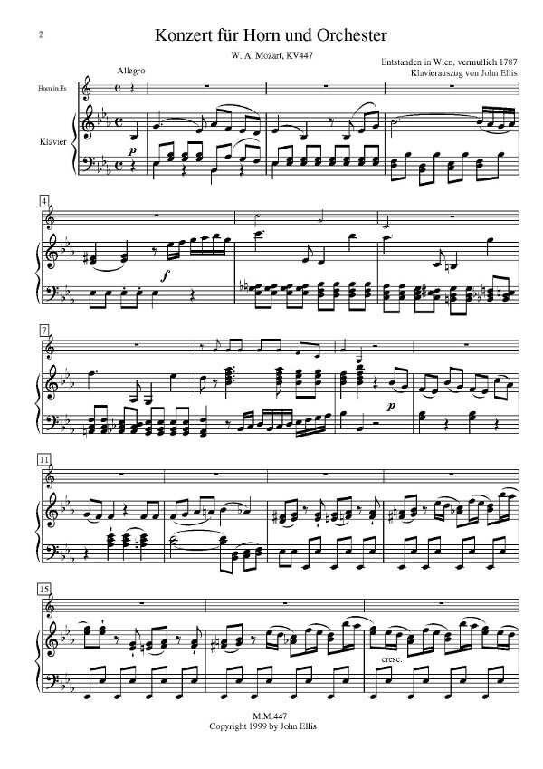 This new edition of the Horn Concerto KV 447 by W. A. Mozart was actually conceived for the accompanists who,