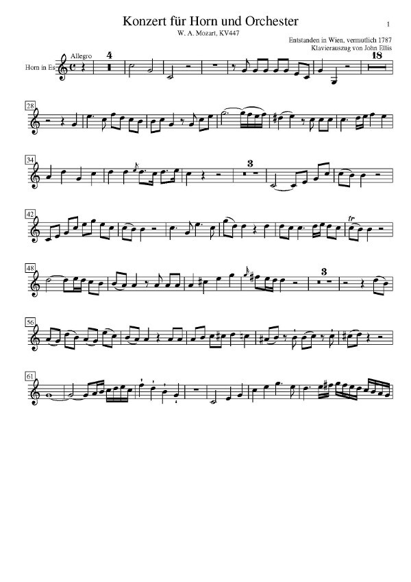 Diese neue Ausgabe des Hornkonzert KV 447 von W. A.