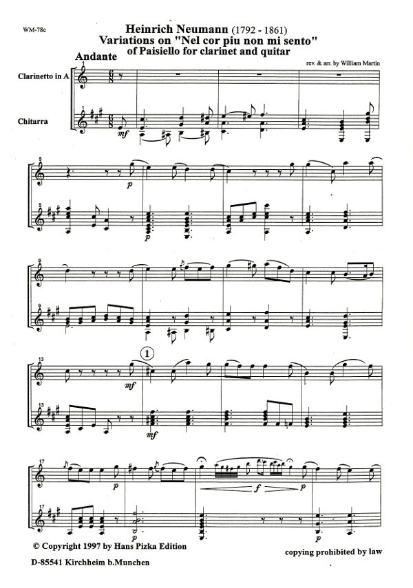 Variationss over G. Paisello's "Nel cor piu non mi sento"