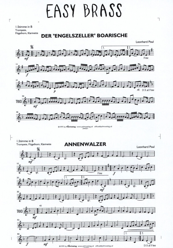 1. Stimme in B/C/ES (Trompete, Klarinette, Flöte, Alt-Sax) 2. Stimme in B/C/ES (Trompete, Klarinette, Flöte, Oboe, Alt-Sax) 3. Stimme in B/C/F (Tenorhorn, Posaune, Horn, Tenor-Sax)