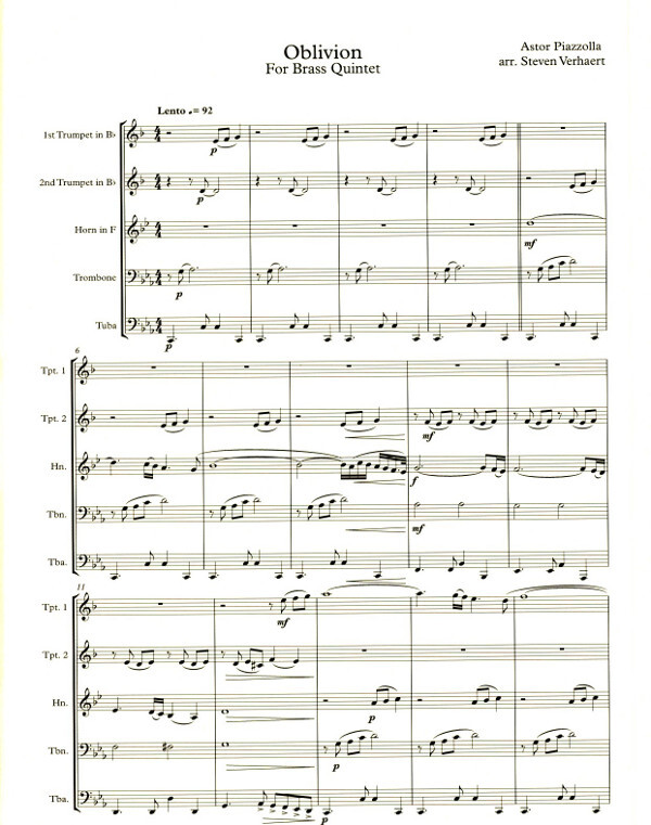 Oblivion - for Brass Quintet