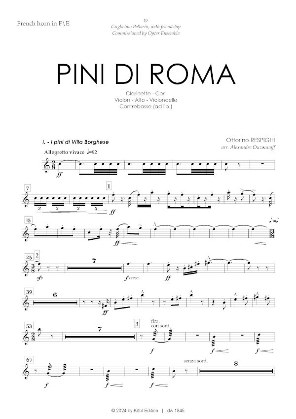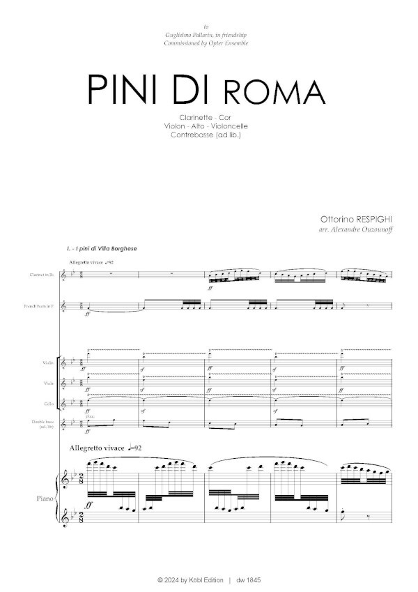 für Clarinet, Horn, Violin, Viola, Cello, Double Bass (ad lib.), Piano