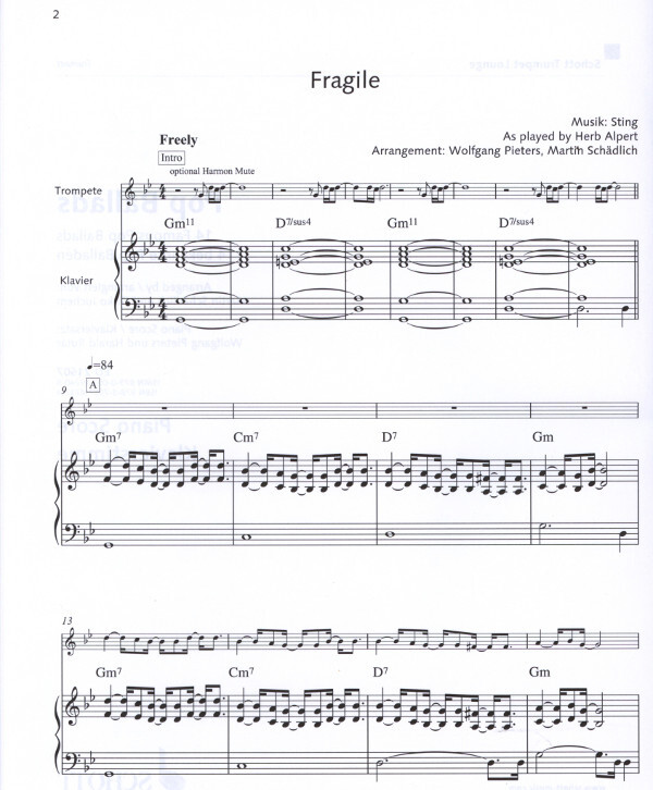 Pop Ballads setzt die neue Serie "Schott Trumpet Lounge" fort, die sich an jeden Trompeter auf der Suche nach frischen und spielbaren Arrangements richtet. Emotionsgeladen und packend bearbeitet der bekannte Trompeter Martin Schädlich ("Trompete spielen - mein schönstes Hobby") die exquisite Auswahl an Pop-Perlen, glamourös und anrührend zugleich.