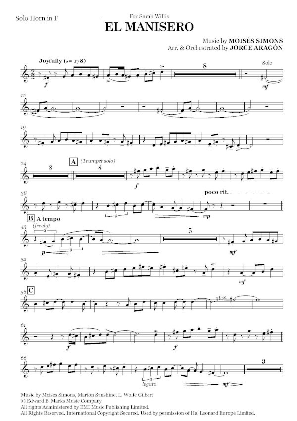 El Manisero - or Horn, Trumpet & Orchestra | Notendownload