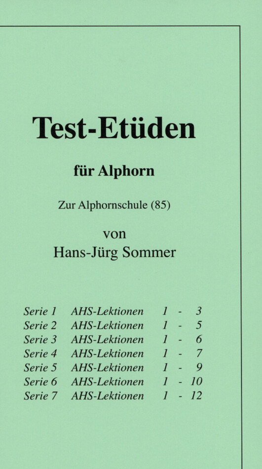 als Ergänzung zur Alphornschule AH 2123 aufgebaut nach den Lektionen der Schule ansteigender Schwierigkeitsgrad 2 x 7 Serien à 6 Etüden