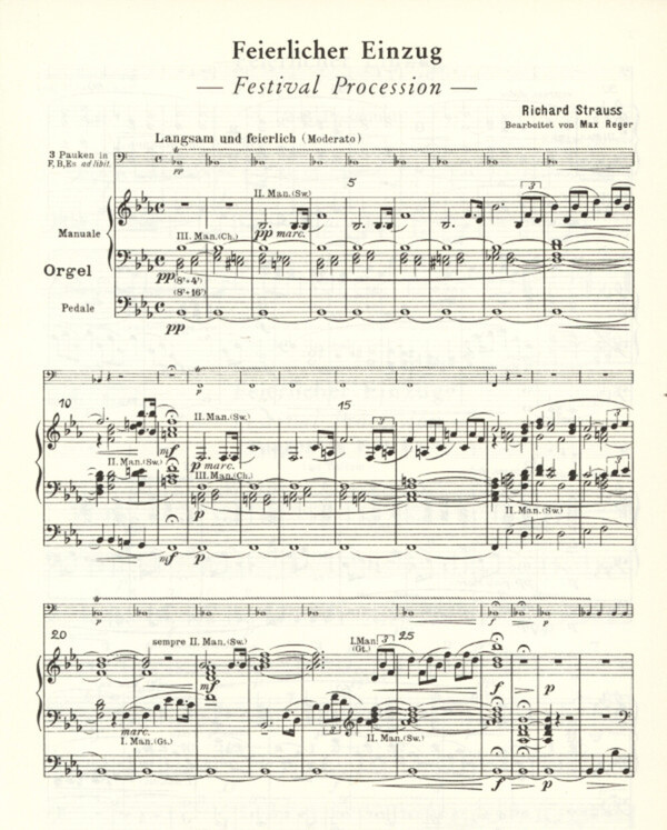 1909 komponiert Posaunen spielen unisono ein schönes Orgelstück, für Posaunen nicht sehr ergiebig im Baßschlüssel