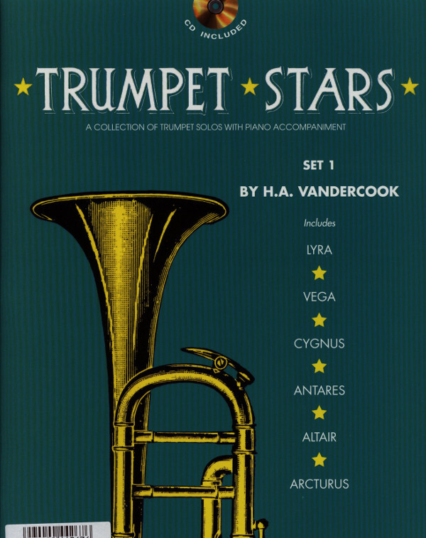 The popular Trumpet Stars by H.A. VanderCook are now combined in two collections that are also included on many state contest lists. Presented in two sets of six titles each (Set 2 - HL04470001), the pieces range in difficulty from grade 1 to grade 2. Each collection includes the solo part, piano accompaniment book, and a demonstration CD with a full performance recording and accompaniment only recording for each song. (Trumpet: Bob Clark; Piano: Mari Falcone) Contents: Lyra · Vega · Cygnus · Antares · Altair · Arcturus
