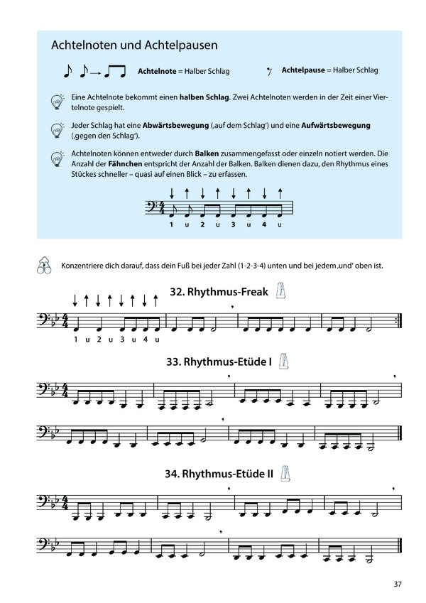 " Zahlreiche Solostücke, Duette, Übungen und Etüden aus verschiedensten Stilrichtungen sorgen für Abwechslung und Motivation und fördern gleichzeitig die technischen und musikalischen Fähigkeiten. " Rhythmusübungen zur Schulung des Rhythmusgefühls.