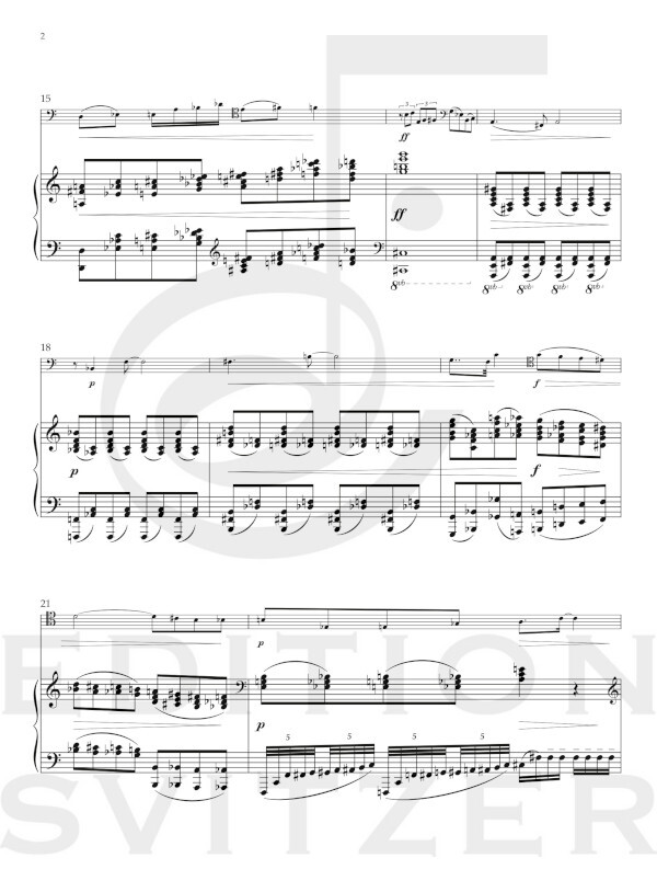 This can provoke both the listener and the performer to the conclusion that this is late or neo-romantic music. This statement, however, would be a fallacy. A predictable and intentional fallacy. Perhaps the work is a kind of film music without film. A music that creates an inner film, that creates inner images, both when listening and when playing.