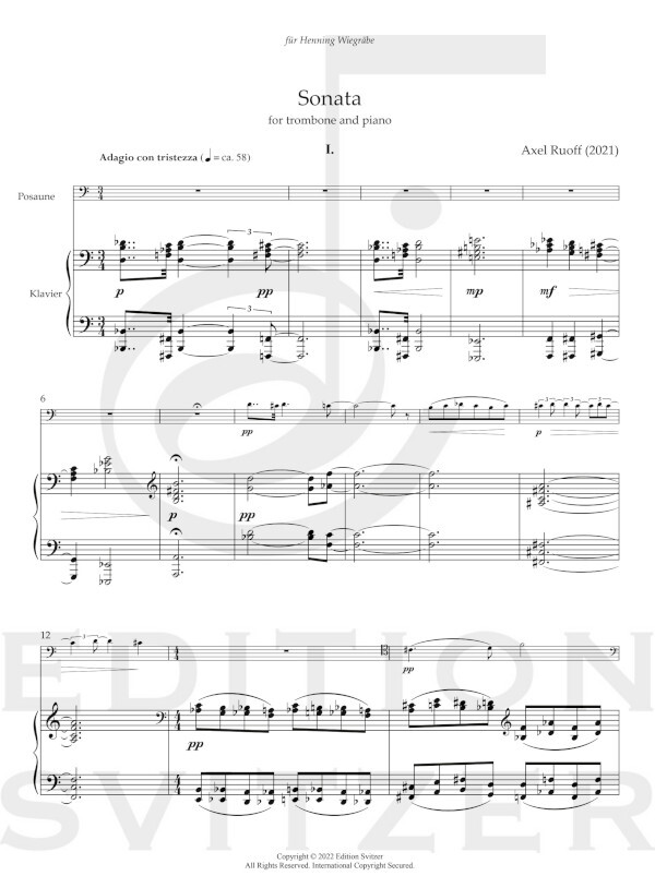The sonata was written in 2021, immediately following "Die Weihe der Nacht" for solo trombone, choir and string orchestra.